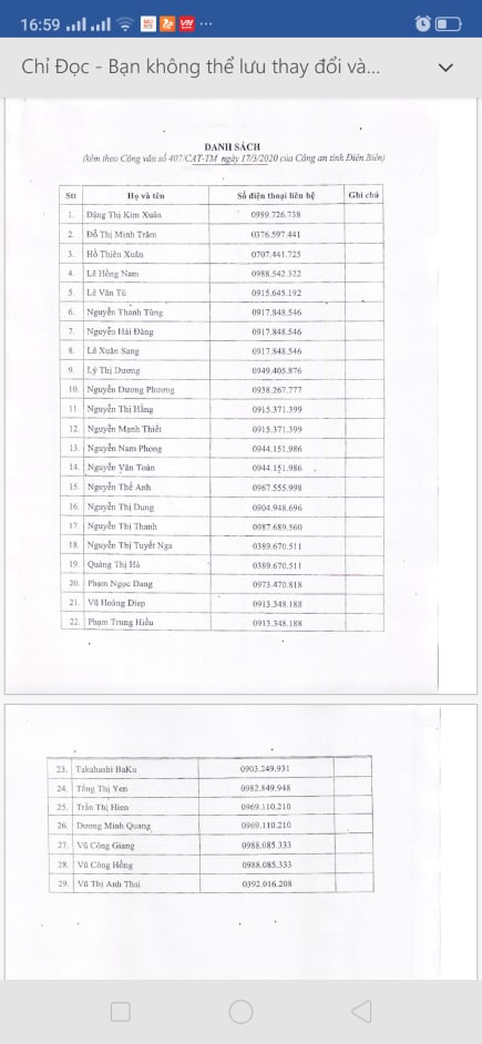 Rà soát thống kê các trường hợp học sinh, học sinh có cha mẹ tiếp xúc với những hành khách trên chuyến bay VN 8024 ngày 15/3/2020 từ Hà Nội về Điện Biên.