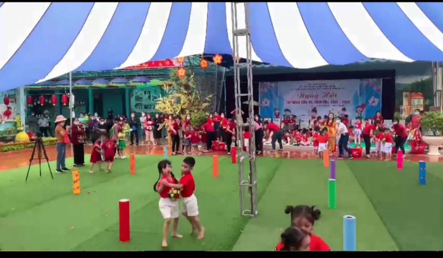 Trong ngày hội năm nay, các bé được tham gia ở 2 nội dung: Buổi sáng 5/5/2022 các bé tham gia nội dung “ Bé khéo tay” với 15 bé ( Trong đó 10 cháu học sinh lớp mẫu giáo lớn thi vẽ và nặn; 5 cháu học sinh mẫu giáo nhỡ thi vẽ). Sáng ngày 6/5/2022 các bé tham gia diễu hành, thi nội dung Chung sức ( Gồm biểu diễn Erobic, trò chơi Chuyền bóng bằng bụng và đi theo đưỡng dic dắc; Trò chơi Nhảy bao bố). Trong tất cả các phần thi các bé đều cố gắng, nỗ lực hết mình thể hiện tài năng ở các bài vẽ, bài nặn, cũng như tinh thần giao lưu đoàn kết với trường bạn trong các trò chơi.