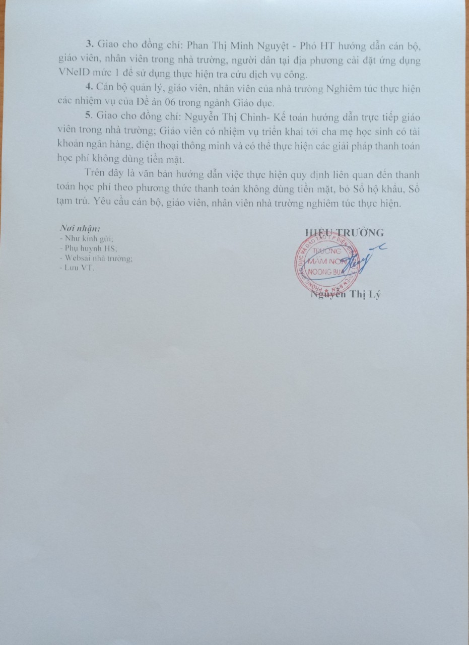 | Số: 13/TrMNNB V/v thực hiện quy định liên quan đến thanh toán học phí theo phương thức thanh toán không dùng tiền mặt, bỏ Sổ hộ khẩu, Sổ tạm trú |