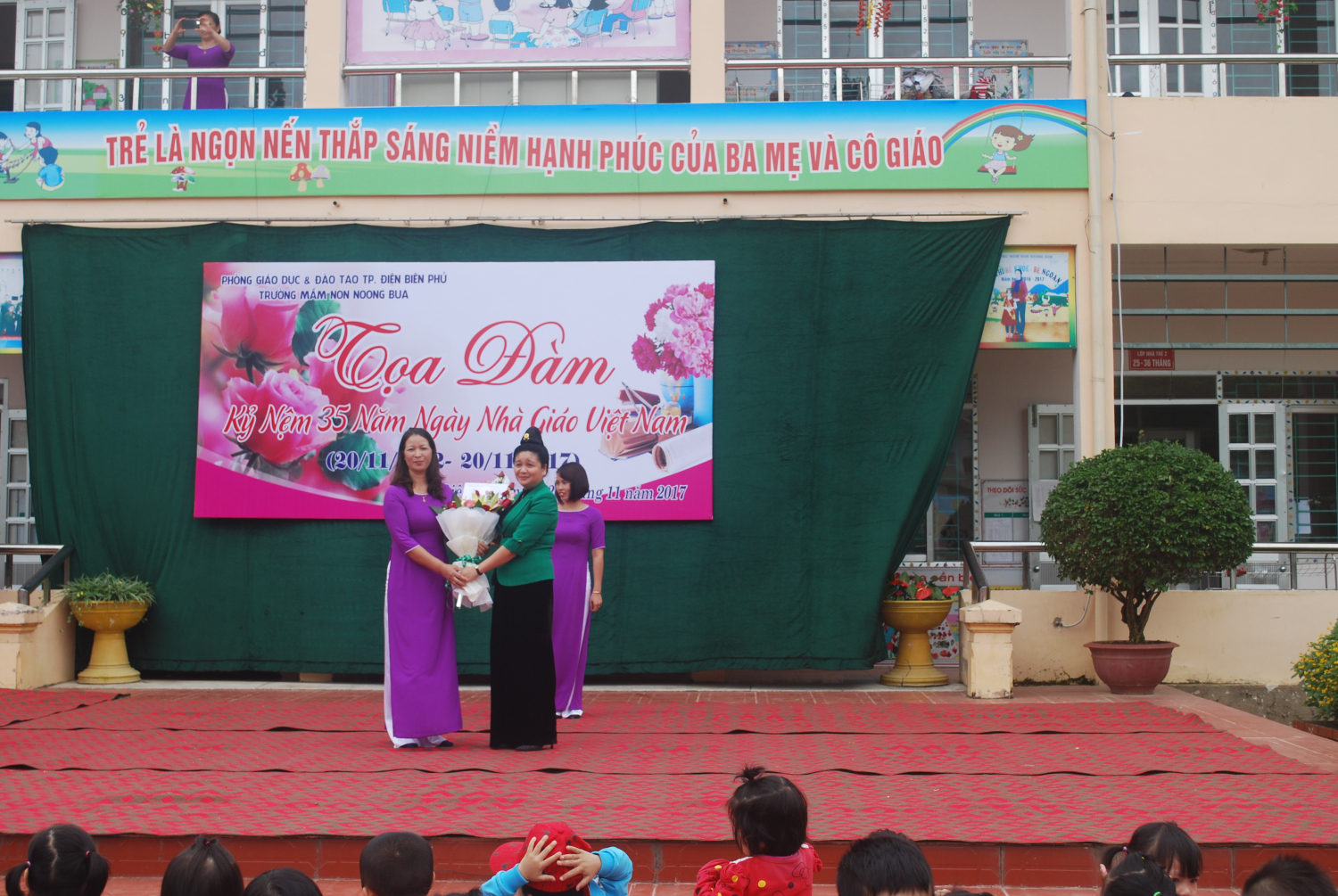 Cũng trong buổi tọa đàm đ/c Lò Thị Hiền - Phó chủ tịch hội đồng nhân dân phường Noong Bua đã gửi đến cô và trò trường MN Noong Bua những lời chúc mừng nồng nhiết nhất đồng thời đ/c cũng đưa ra những ý kiến chỉ đạo thiết thực nhất đối với các đ/c CB-GV-NV trong nhà trường để góp phần đưa giáo dục phường Noong Bua sánh ngang với giáo dục các phường bạn trên địa bàn thành phố, góp thêm những bông hoa rực rỡ trong vườn hoa tươi thắm của Nghành Giáo dục thành phố Điện Biên Phủ nói riêng và Nghành giáo dục tỉnh nhà nói chung.