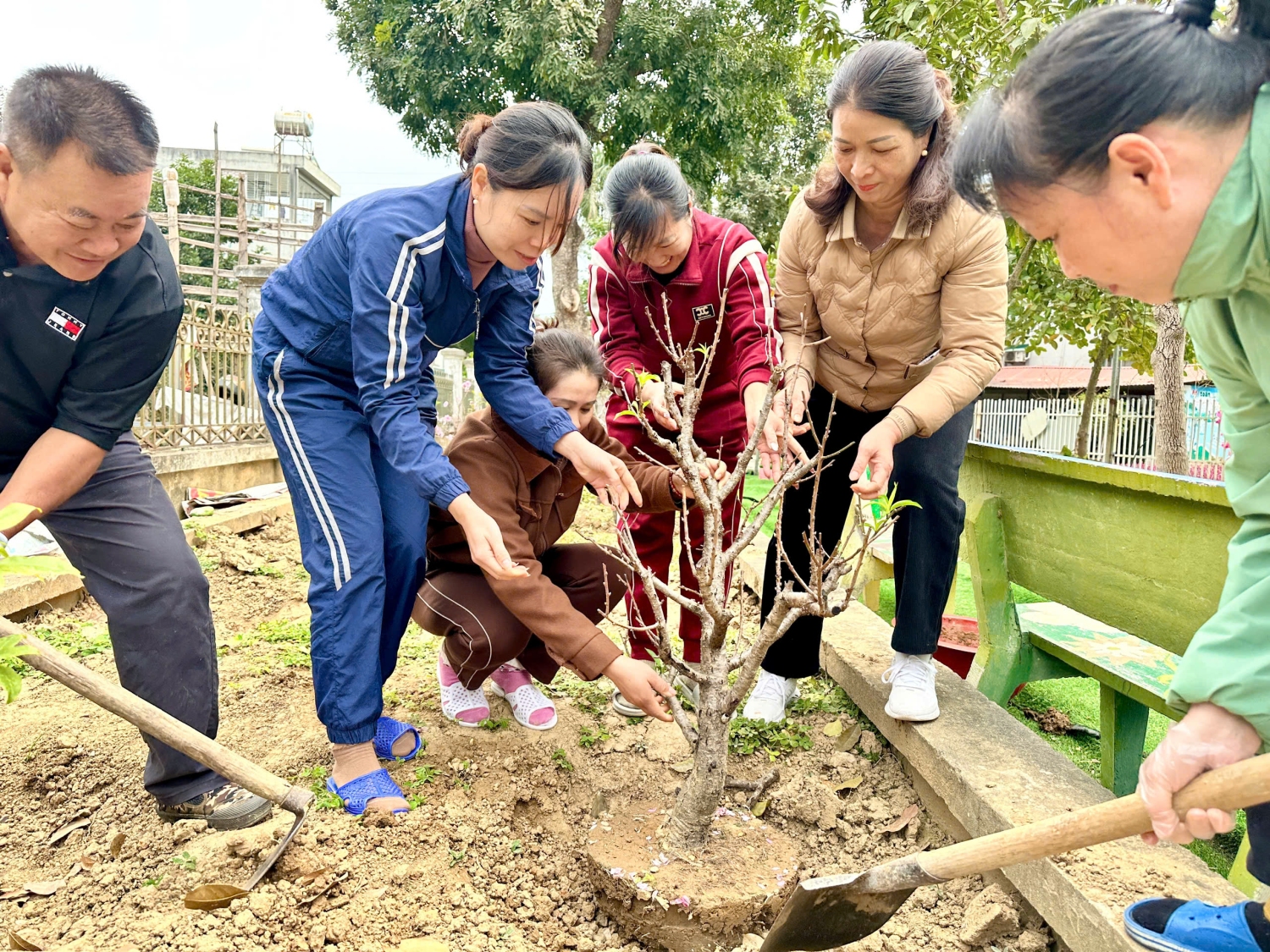 Tham gia “ Tết trồng cây” có các đồng chí cán bộ quản lý, giáo viên và nhân viên trong toàn trường. Đã có rất nhiều các cây ăn quả, cây xanh, cây cảnh được trồng để tạo bóng mát, tạo cảnh quan làm đẹp môi trường. Việc trồng cây xanh trong nhà trường còn giúp điều hòa khí hậu khiến cho bầu không khí trở nên thanh sạch, trong lành. Ngoài ra việc trồng cây xanh còn tạo môi trường để trẻ khám phá trải nghiệm và tìm hiểu về các loại cây.