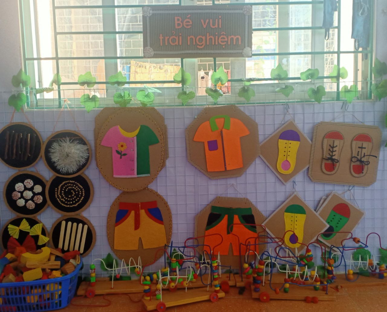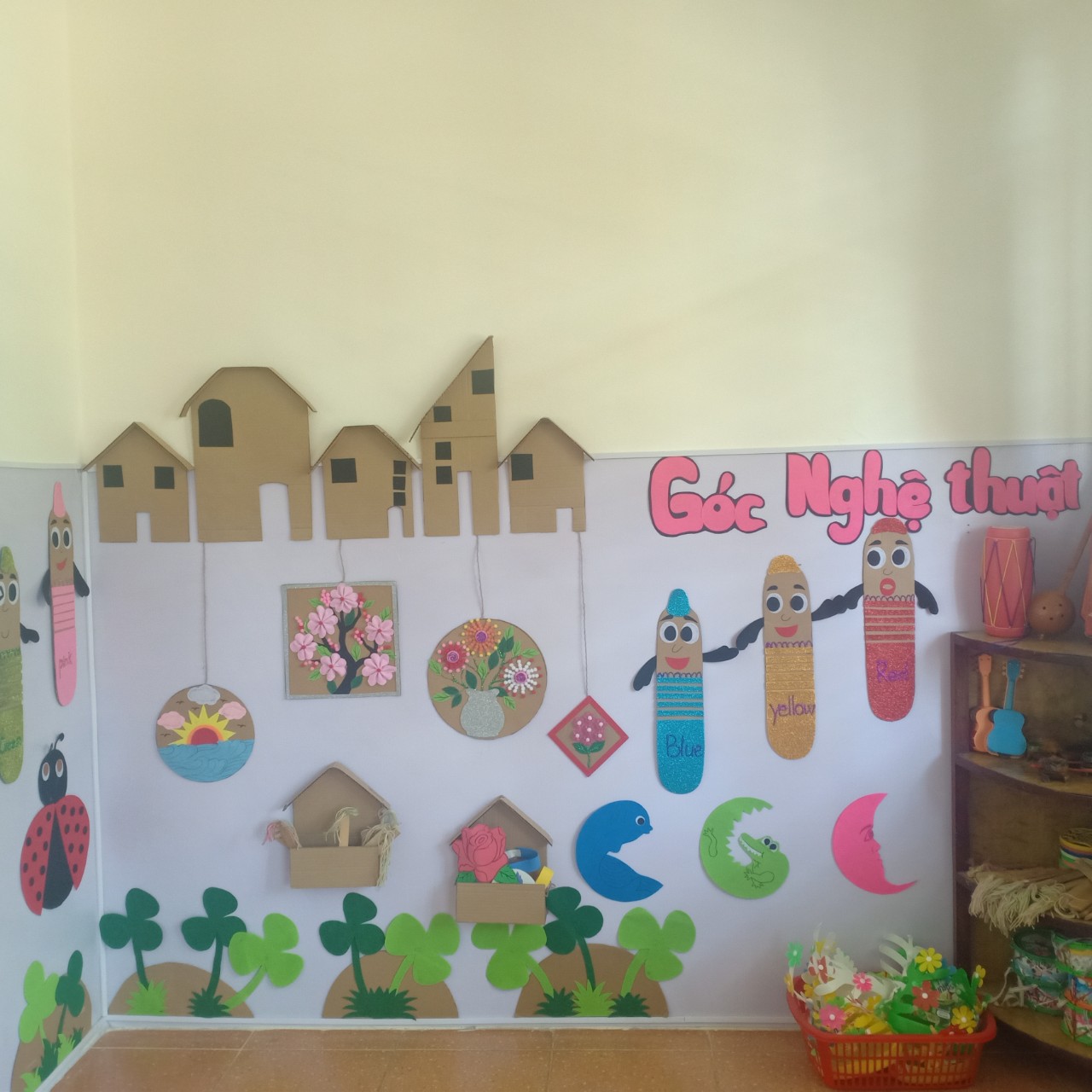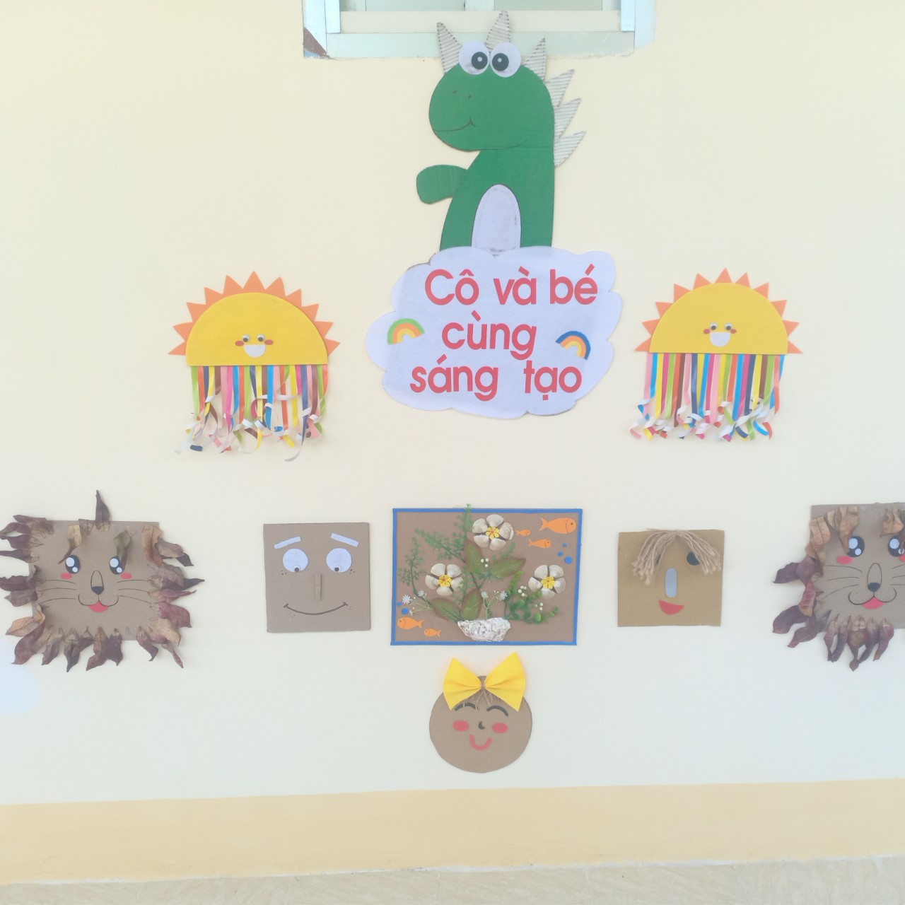 Phong trào diễn ra sôi nổi, đạt hiệu quả cao trong công tác tạo môi trường trong lớp cũng như ngoài lớp. Các lớp đều tận dụng các nguyên vật liệu thiên phế thải, các nguyên vật liệu thiên nhiên thân thiện với môi trường như: Bìa các tông, lá cây, nắp chai, đá, sỏi, cành cây khô, dây cói.......thực hiện trang trí theo đúng chủ đề, có đầy đủ các góc hoạt động, giáo viên đã bố trí, chọn các góc chơi, góc học tập phù hợp với không gian lớp học. Các góc có đa dạng đồ dùng, đồ chơi, nguyên vật liệu các đồ chơi tự tạo, đa dạng về kiểu dáng, mầu sắc, chất liệu cho trẻ chơi, và hoạt động sáng tạo. Đồ dùng, đồ chơi, nguyên vật liệu được sắp xếp gọn gàng, hợp lý, kích thích hứng thú hoạt động của trẻ. Trẻ có thể thoải mái hoạt động tự tay lấy, tháo lắp đồ dùng trên các góc chơi. Trẻ được “ Học mà chơi, chơi mà học” nhằm phát triển năng lực của mỗi trẻ. Các hình ảnh, mô hình, biểu bảng trang trí ở lớp học, góc cầu thang.....; nơi trẻ thường xuyên tiếp xúc như cửa lớp, phòng ngủ, phòng vệ sinh… đều được thể hiện rõ những mảng hình động và rất phong phú về thể loại, màu sắc, có thể thay đổi được thường xuyên mà vẫn đảm bảo về kiến thức, khả năng cảm thụ nét đẹp, sự tư duy, sáng tạo cho tất cả các trẻ cũng như gây sự hứng thú, sự tò mò khi trẻ tham gia hoạt động hay tiếp xúc hàng ngày.