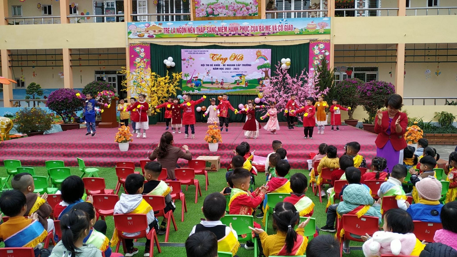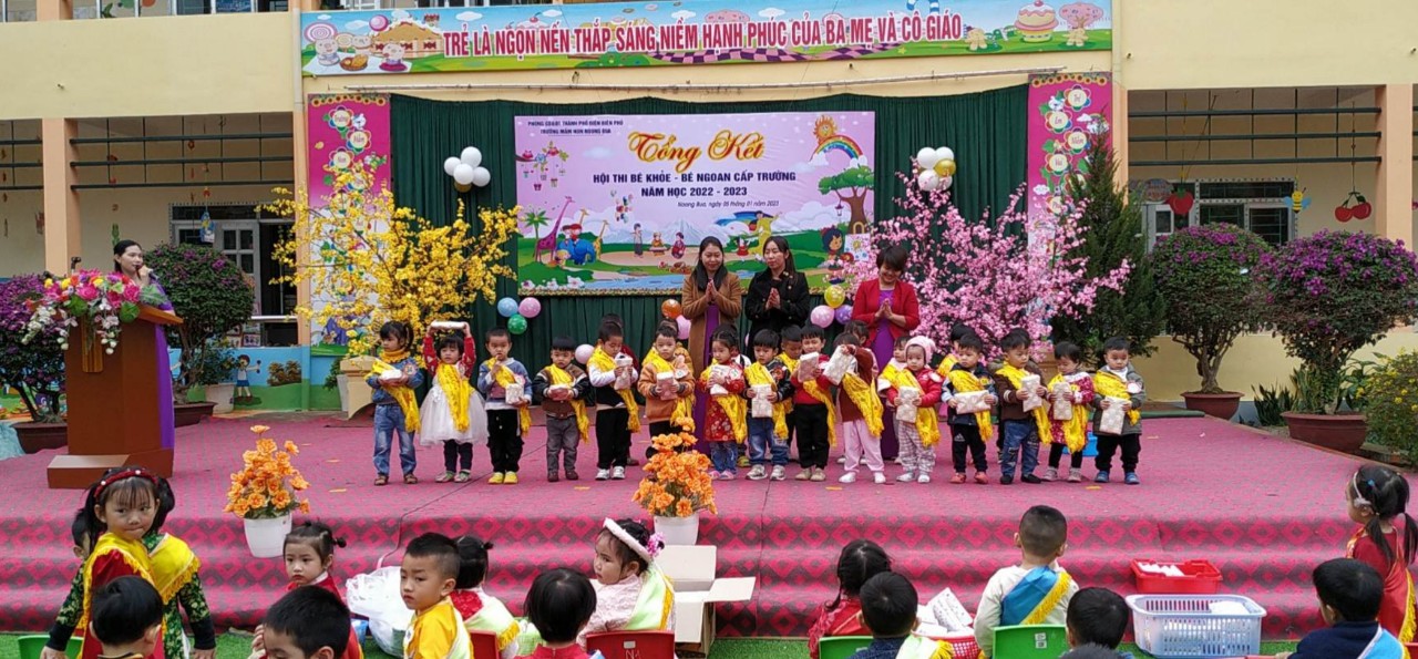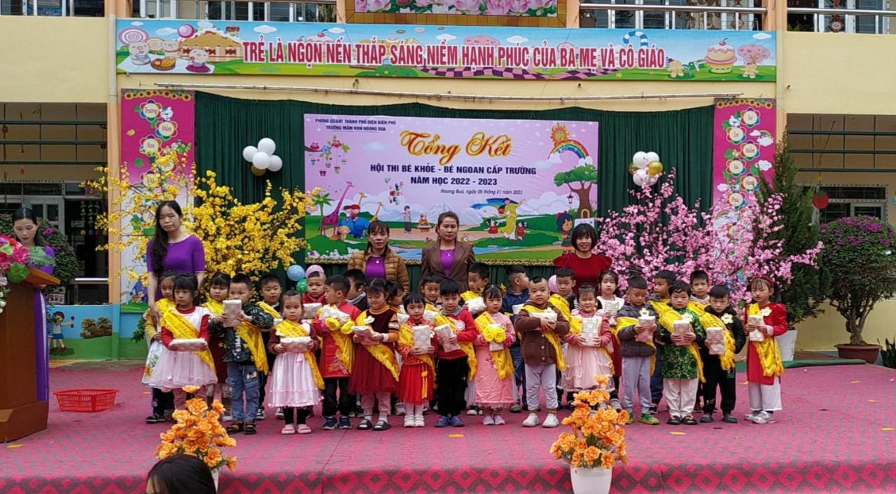 Để khen thưởng những cháu đạt thành tích cao trong hội thi, sáng ngày 5/1/2023 trường mầm non Noong Bua đã tổ chức tổng kết hội thi, đến dự động viên và cổ vũ cô và trò nhà trường có Ban đại diện cha mẹ học sinh nhà trường, Ban đại diện cha mẹ học sinh của 9 nhóm lớp và đông đảo các bậc phụ huynh và học sinh trong toàn trường. Tại buổi tổng kết, Ban tổ chức đã trao: 1giải giải đặc biệt ( cháu Phạm Lê Gia Nguyên– Lớp Mẫu giáo 5-6 tuổi D1), 30 giải nhất, 50 giải nhì, 55 giải ba và 39 giải khuyến khích cho các bé.