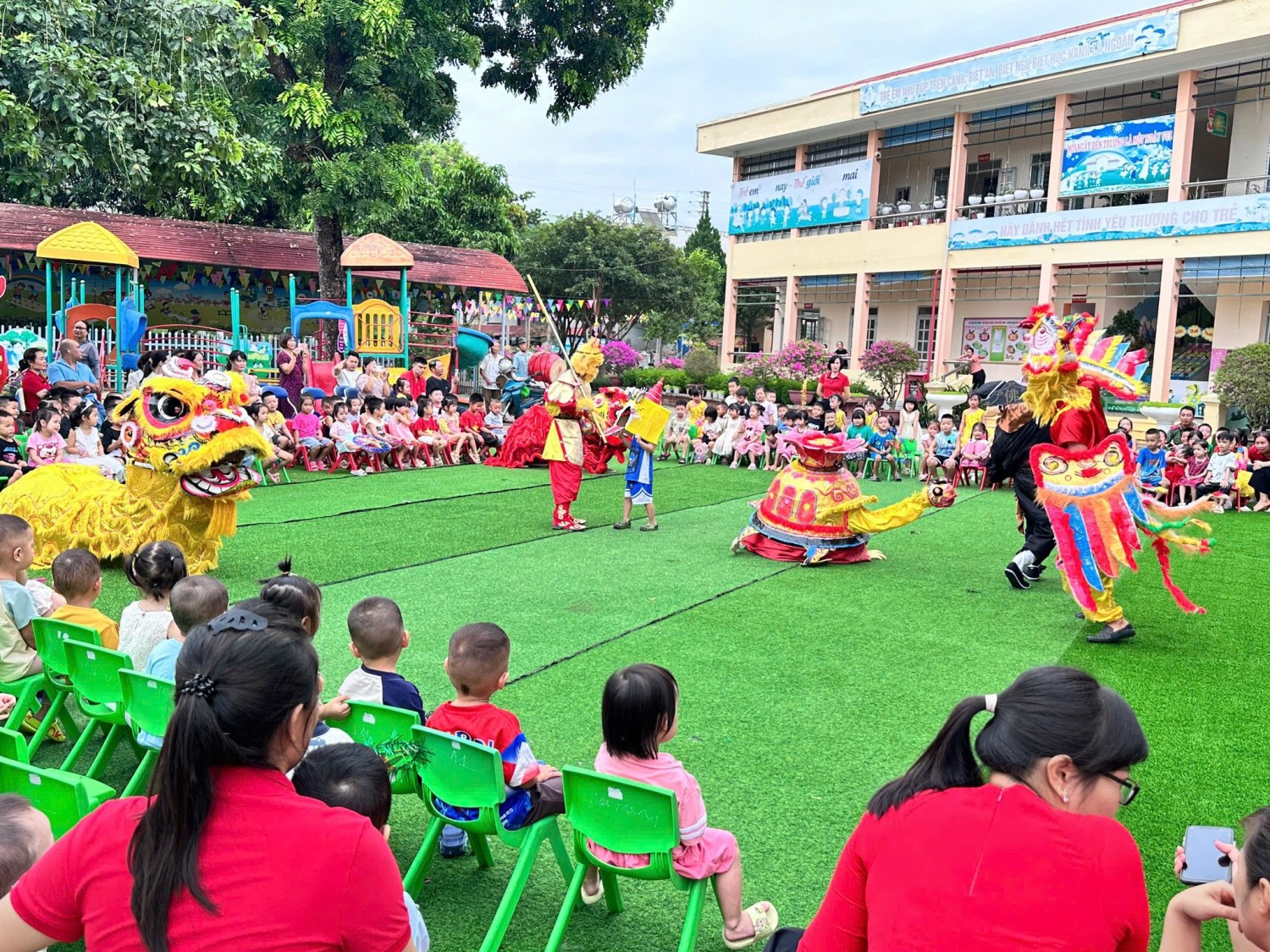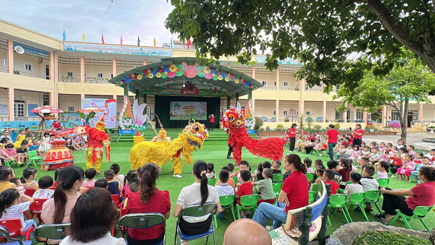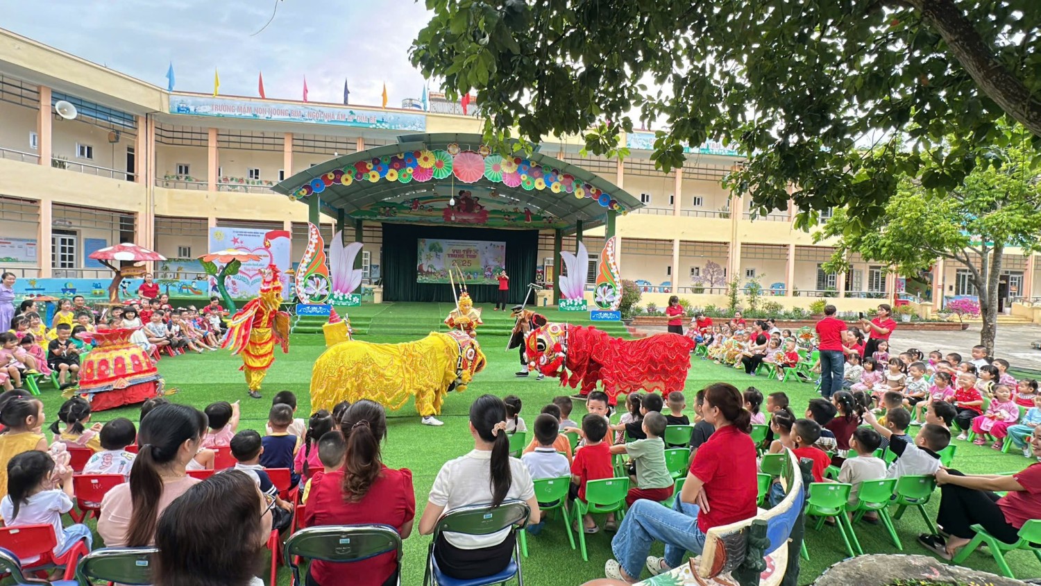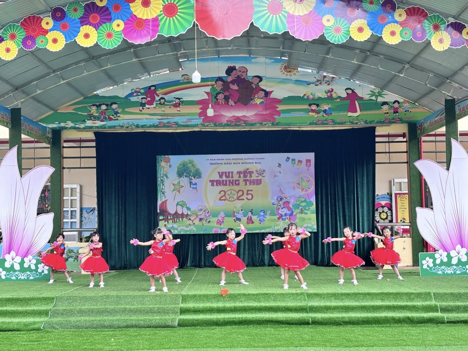 Sáng ngày 06/10/2025 (15/8 âm lịch), không khí Trung thu rộn ràng ngập tràn khắp Trường Mầm non Noong Bua. Các bé háo hức tham gia chương trình “Vui Tết Trung Thu” với những tiết mục văn nghệ đáng yêu, màn múa Lân tưng bừng và phần “phá cỗ” vui tươi, ngọt ngào tại các lớp. Ngày hội Vui tết Trung Thu không chỉ là dịp để các bé vui chơi,thưởng thức văn nghệ mà còn là cơ hội để các bé hiểu thêm về ý nghĩa của ngày Tết Trung Thu - Tết của tình thân, của chia sẻ, của tuổi thơ trong sáng. Đây cũng là hoạt động thể hiện sự quan tâm, yêu thương của nhà trường,các cô giáo và các bậc phụ huynh dành cho các con. Trung thu năm nay, các bé trường mầm non Noong Bua không chỉ có đèn, có bánh mà còn có thật nhiều nụ cười, nhiều tình yêu thương và ký ức đẹp đẽ của tuổi thơ. Những nụ cười hồn nhiên, ánh mắt long lanh của các bé khiến không gian thêm ấm áp, tràn đầy yêu thương, hạnh phúc. Nhà trường xin trân trọng cảm ơn sự quan tâm và đồng hành của quý phụ huynh, nhờ đó các bé đã có một mùa Trung thu trọn vẹn, lung linh và đầy ắp tiếng cười.
